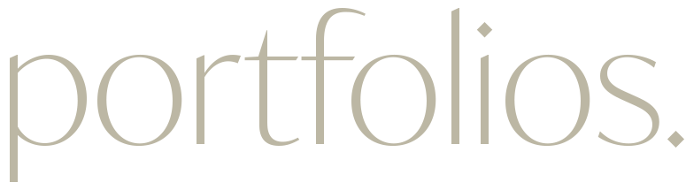 Close-up of the word 'portfolios' written in a stylized font on a dark background.