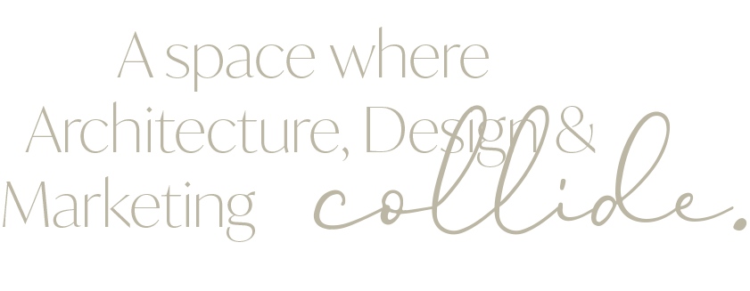 Text on black background reads, "A space where Architecture, Design & Marketing collide."